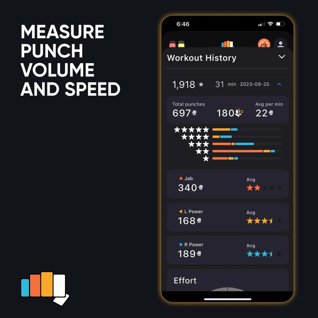 Easily see the power and speed of each punch with our 5-star rating system, plus a detailed summary of your entire workout.